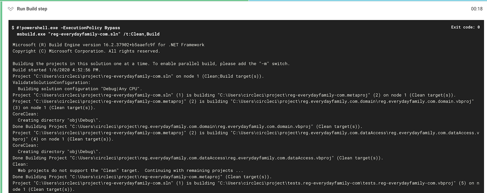 - The fourth step of the pipeline builds and compiles the project. It does a clean build by making sure to rebuild all binaries. This is important because a “normal” build (without explicitly specifying a full rebuild of the application) wouldn’t re-compile the binaries used by the testing pipeline, and as such the tests would fail to run as they wouldn’t be up to date with other components in the application.